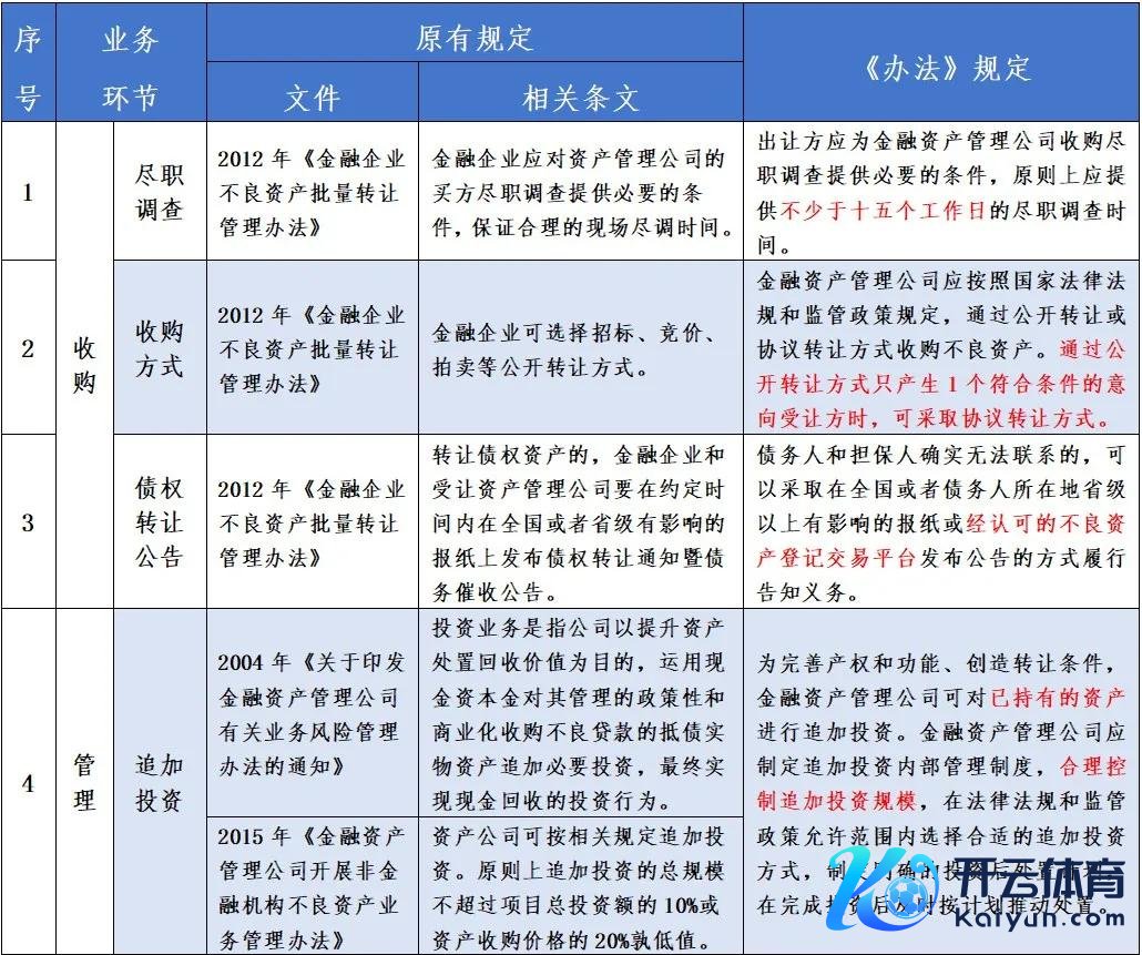 《办法》本着强化风控、兼顾终端的原则,对不良钞票收购、经管和治理全进程中尽责走访、追加投资、治理公告、治理订价、不容受让主体等要津规范操作表率进行了优化更新。具体而言: