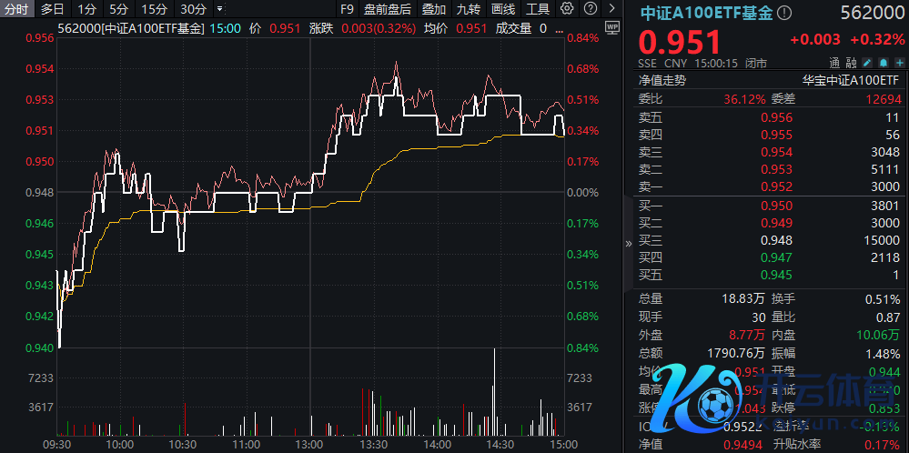 收获于TMT成份股批量飙涨,中证A100指数本日(12月19日)逆市收涨kaiyun官方网站,全阛阓边界最大中证A100ETF基金(562000)午后发力拉升,场内价钱收涨0.32%斩获三连阳,尽管涨幅不大,但推崇强于沪指(-0.36%)、沪深300(+0.09%)等主要指数。