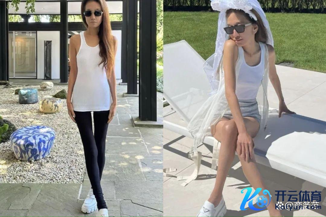 之前还穿过LV Legging,搭配抹胸吊带,也真的够拼的。