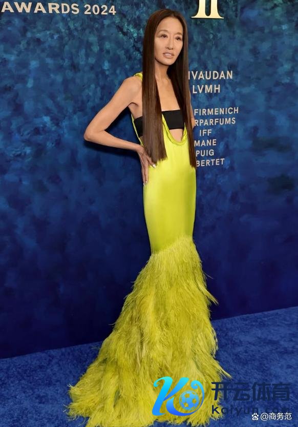 参加LVMH的举止,斗胆穿了孑然荧光色流苏鱼尾连衣裙,罕见“炸街”。