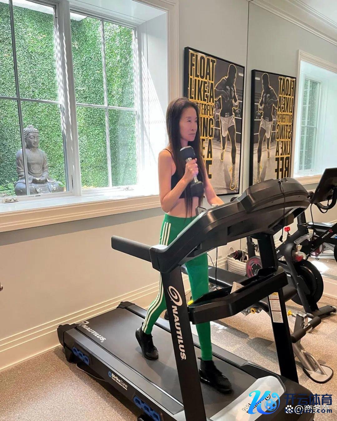 她还配备了家庭健身房,往往晒多样跑步机照什么的。有钱有闲,生活样式也相比健康。