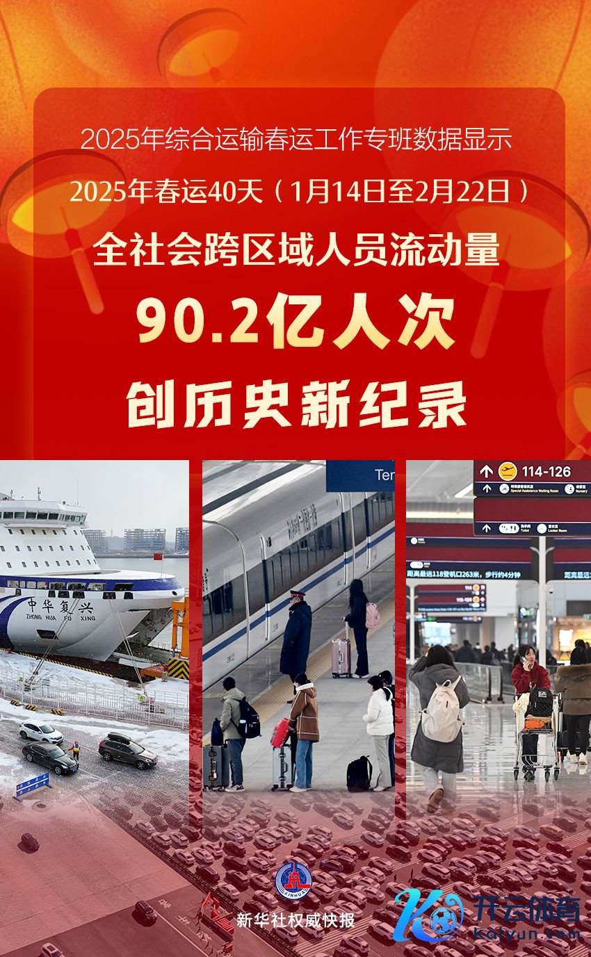 春运“跑”出新记载!2月23日,来自2025年概括运输春运职责专班数据露出kaiyun中国官方网站,本年春运全社会跨区域东谈主员流动量为90.2亿东谈主次,创历史新记载。