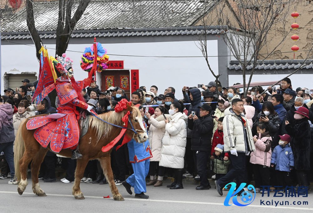 2月12日,游客在陇县元宵节社火巡游行径上不雅看马社火饰演。 新华社记者 邹竞一 摄